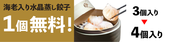 ■本場香港の絶品の味「海老入り水晶蒸し餃子」通常3個入り→1個無料の4個入り!
